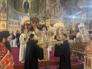 Στην ακολουθία χοροστάτησε ο Σεβασμιώτατος Μητροπολίτης Πειραιώς κ. Σεραφείμ πλαισιούμενος από τον ιερό κλήρο του Ναού.