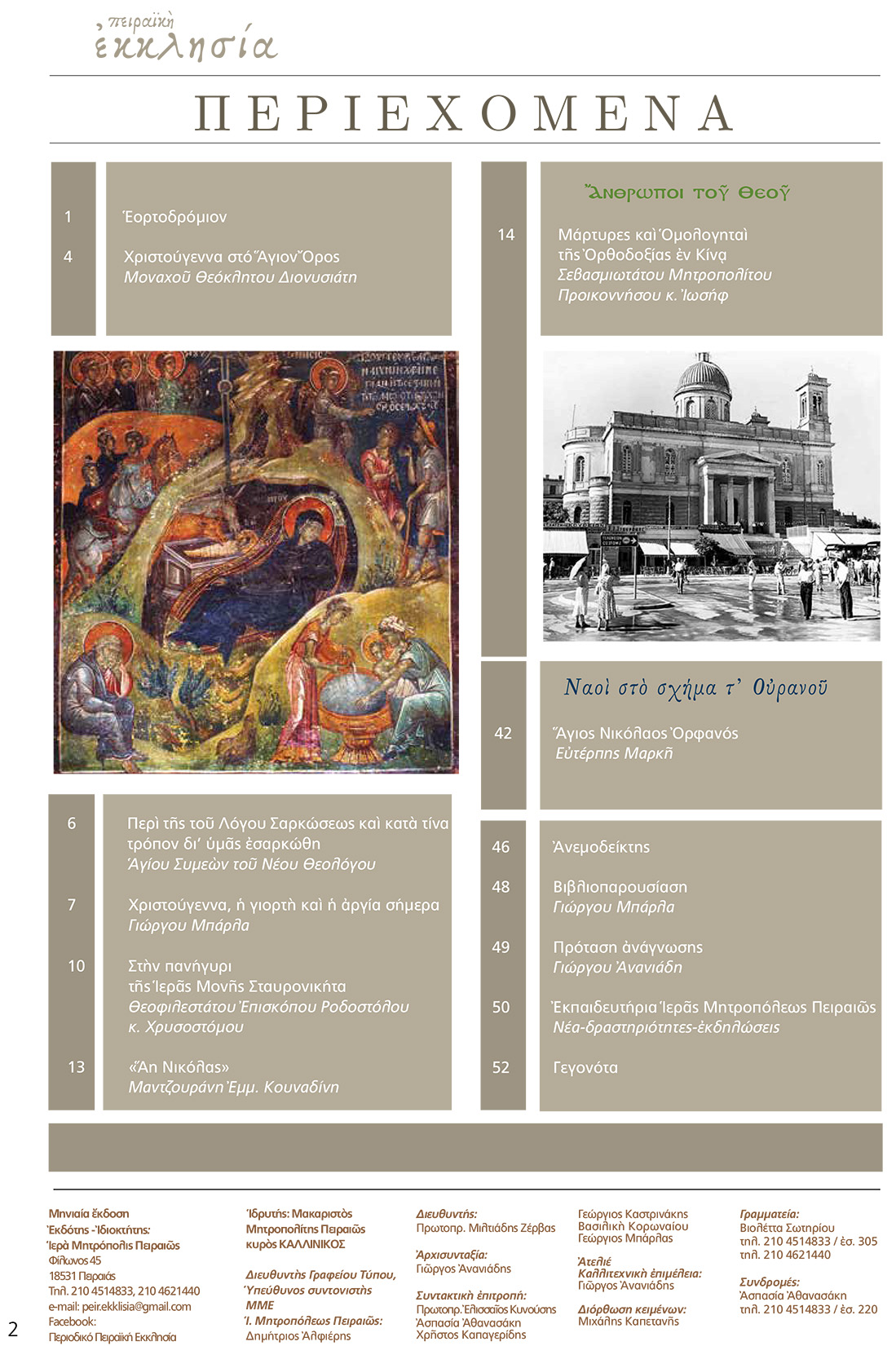 Κυκλοφόρησε το τεύχος του περιοδικού «Πειραϊκή Εκκλησία» για τον μήνα Δεκέμβριο 2024.