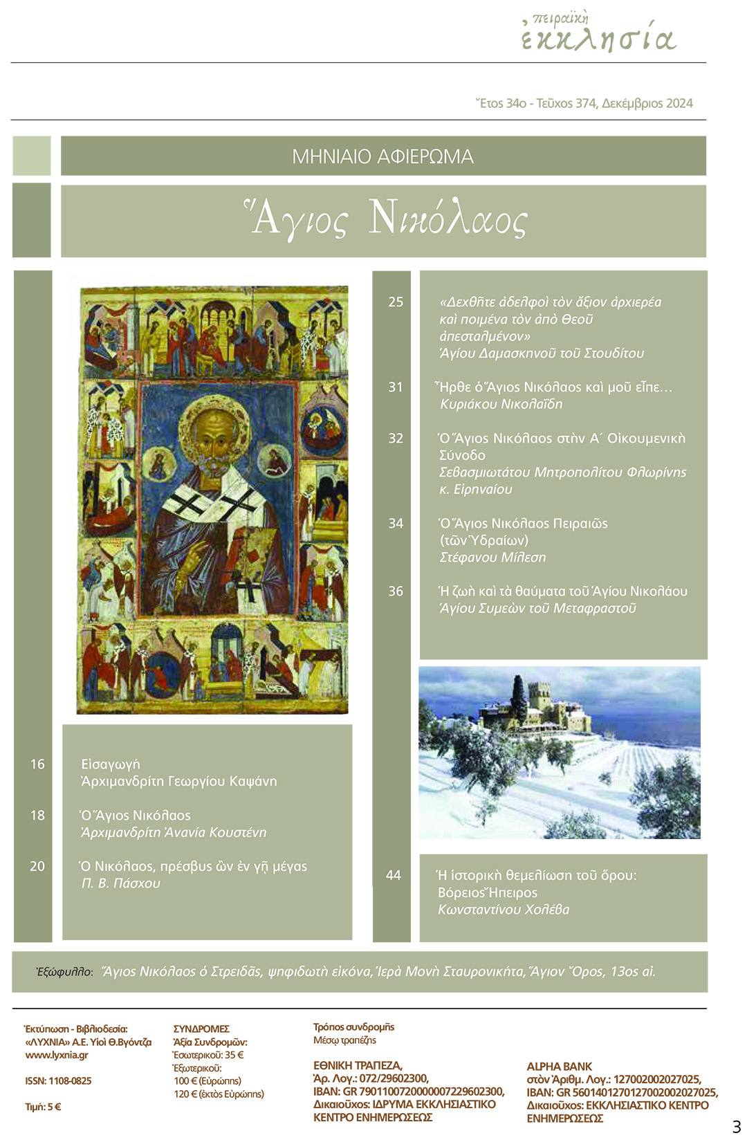 Το κεντρικό αφιέρωμα έχει θέμα: Άγιος Νικόλαος