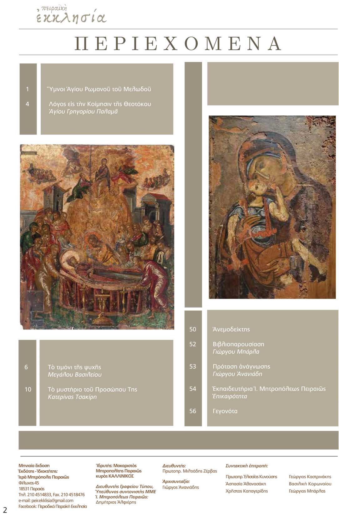 Το Περιοδικό «Πειραϊκή Εκκλησία» μπορείτε να το βρείτε σε όλους τους Ναούς της Ιεράς Μητροπόλεως Πειραιώς, καθώς και σε κεντρικά βιβλιοπωλεία.