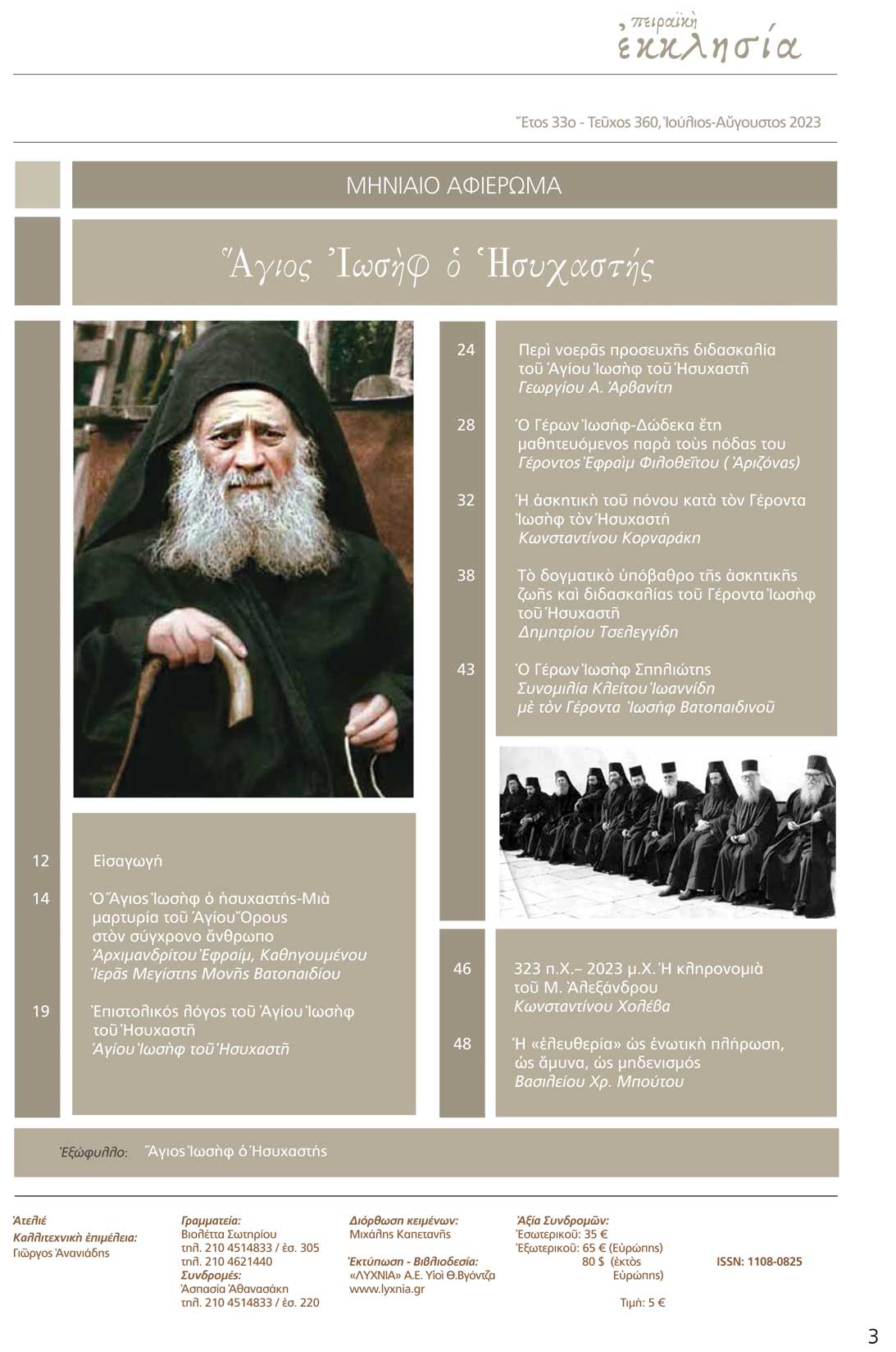 Το κεντρικό αφιέρωμα έχει θέμα: Άγιος Ιωσήφ ο Ησυχαστής