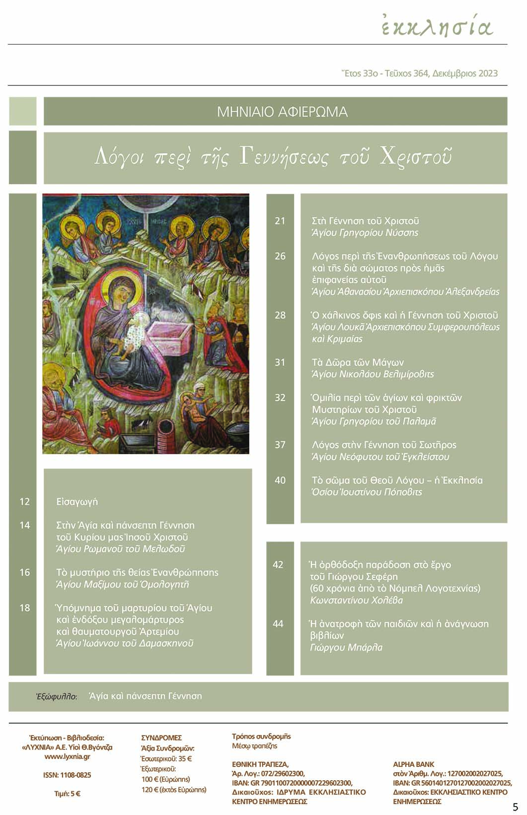 Το κεντρικό αφιέρωμα έχει θέμα: Λόγοι περί της Γεννήσεως του Χριστού