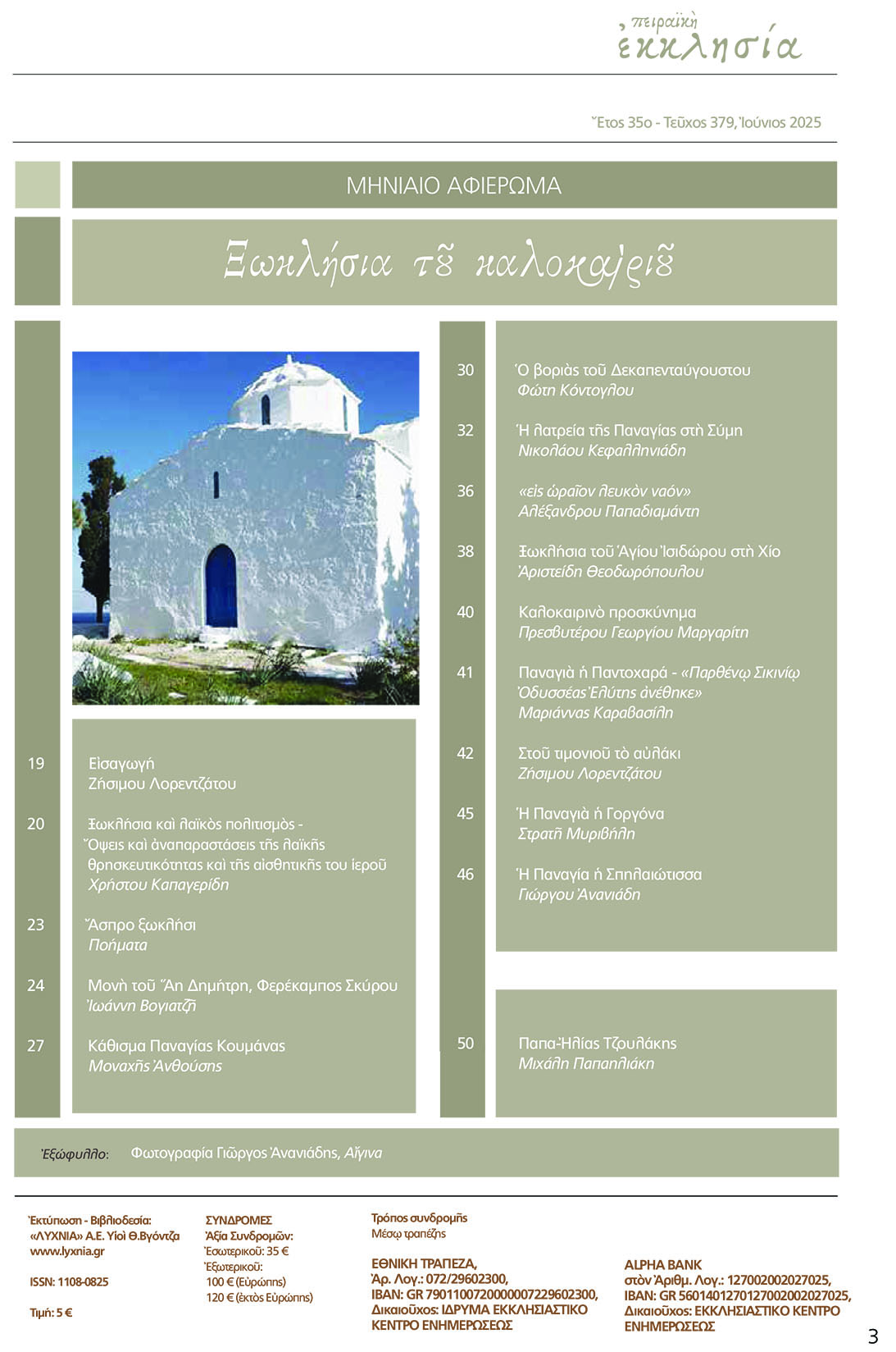 Το κεντρικό αφιέρωμα έχει θέμα: Ξωκλήσια του καλοκαιριού